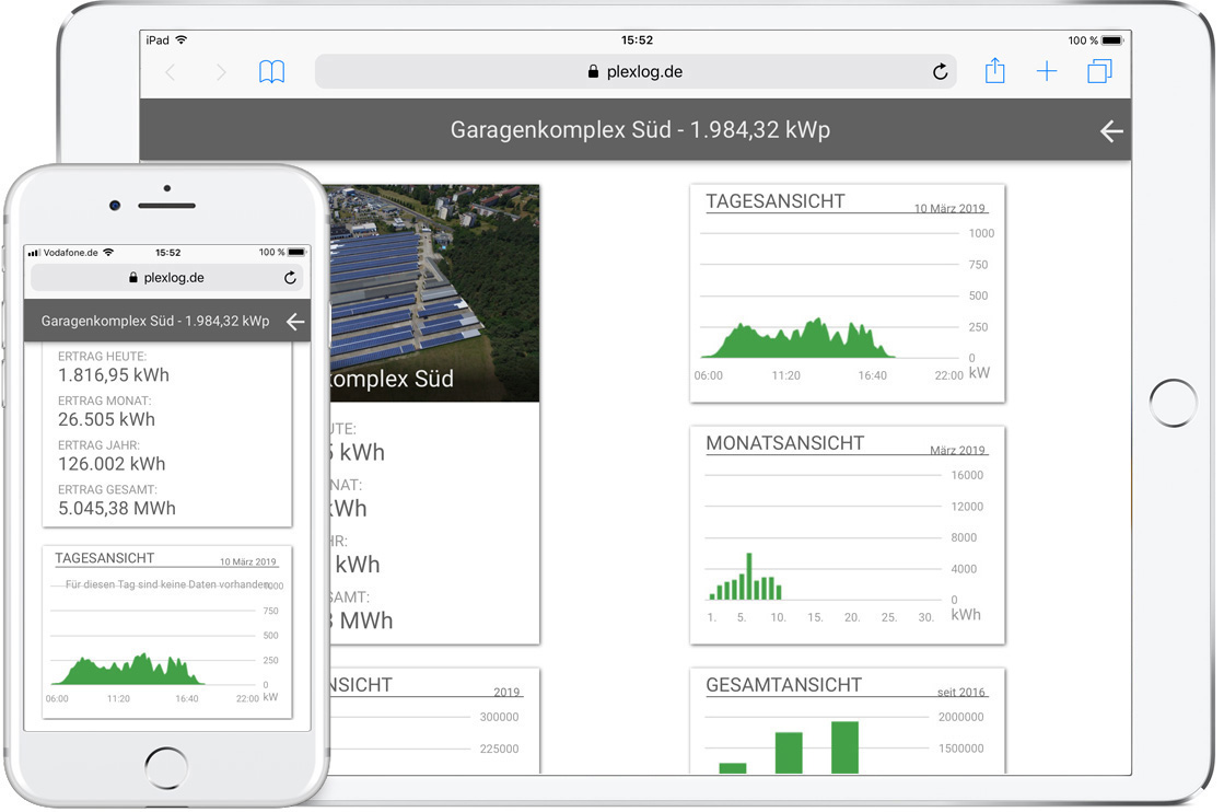 Wir bieten Ihnen die Umstellung auf ein neues Portal-System zur Auswertung und Überwachung ihrer PV-Anlage. Anlagenverwaltung, Ertrags- und Vergleichsanalysen, Störungmeldungsmanagement, aktuelle Wetterdaten und vieles mehr, übersichtlich für Sie aufbereitet. Profitieren Sie von einer komplett neuen Darstellung der aktuellen und historischen Daten Ihrer PV-Anlage, völlig gleich womit Sie zugreifen - ob Smartphone, Tablet oder Desktop-PC.